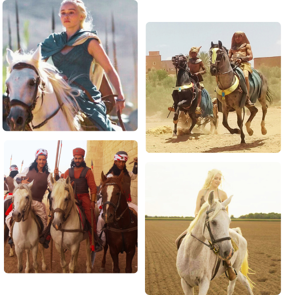 At Hollywood Star Horses, our horses are not just trail companions—they are cinema-trained professionals with credits in some of the world’s greatest productions. Ride through Morocco’s breathtaking landscapes on the same horses that galloped across epic battlefields in Gladiator, charged through the sands in Game of Thrones, and brought history to life in Kingdom of Heaven.