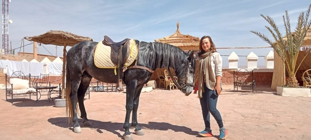 A favorite for film lovers and riders alike. Depart from the stables, cross film sets, gallop through open fields and dry riverbeds, and arrive at the majestic Kasbah of Tifoultoute — a cinematic fortress with centuries of history.